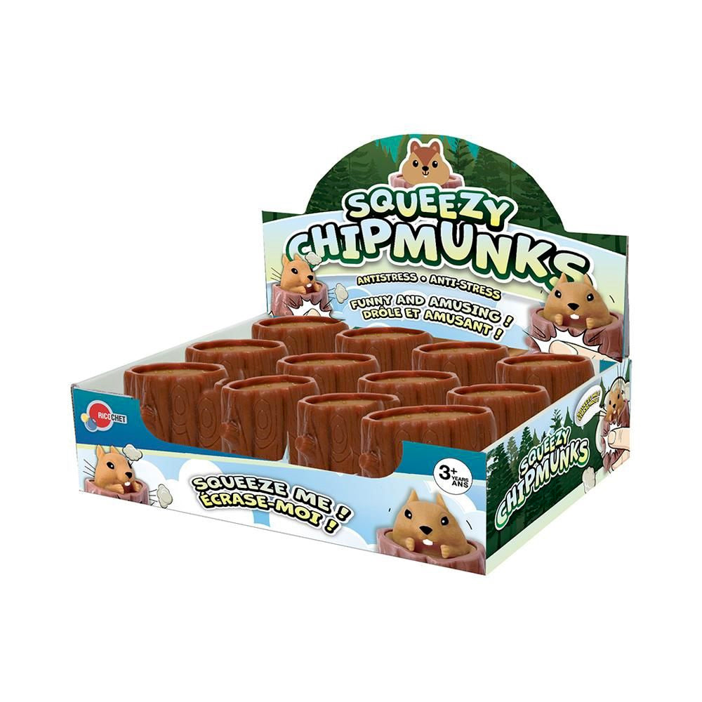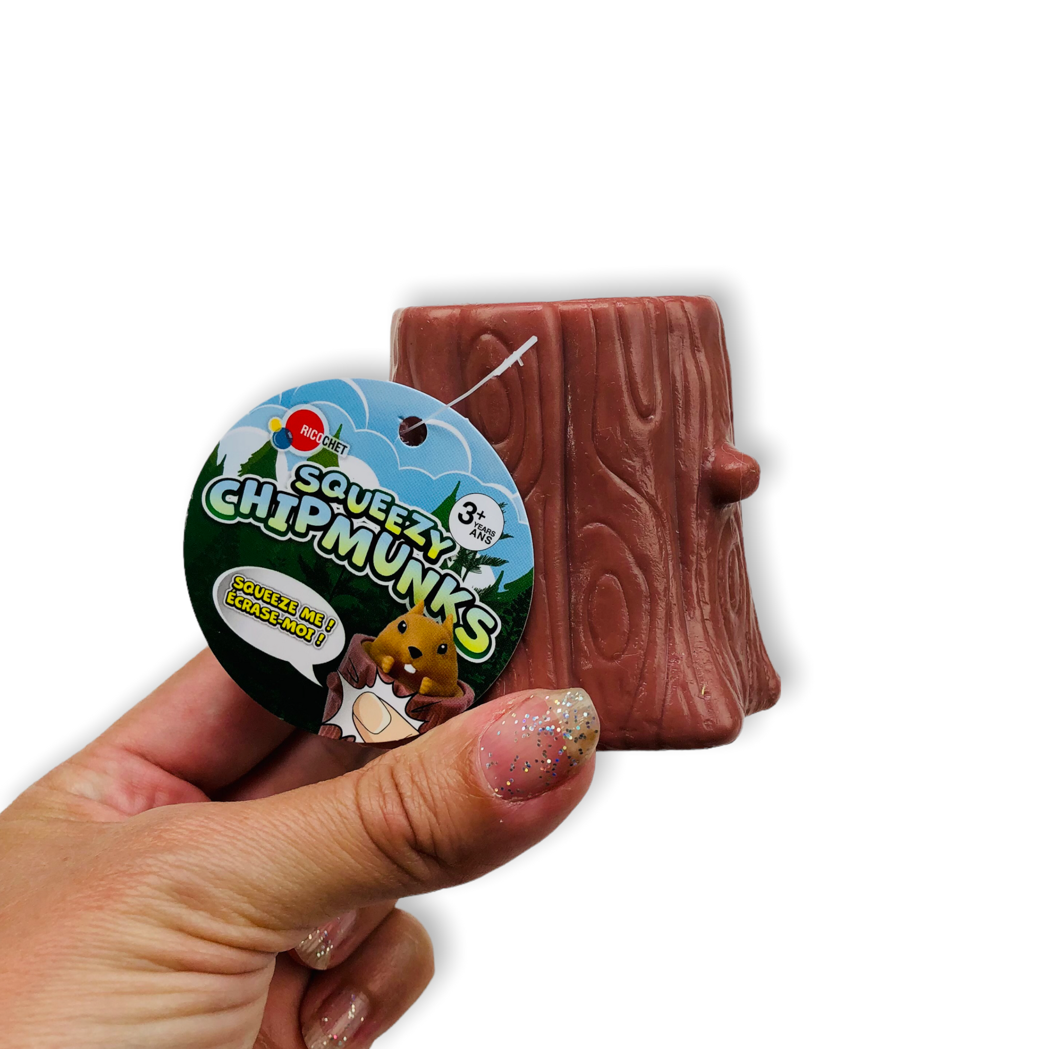 Watch these adorable chipmunks pop out of their tree logs. Squeeze the tree trunk to see it pop out! Release for it to go back inside! So much fun!